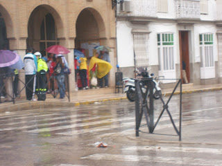 A las 19:30 h. se tenía prevista la primera salida, en las categorías Benjamín masculino y femenino. Sin embargo, era las 19:00 h. y una tromba de agua descargaba en las calles de Herrera, lo que hacía presagiar que tocaba mojarnos nuevamente, tal y como pasó en el Duatlón. Con todo preparado, solamente nos encontrábamos esperando que la lluvia hiciera un descanso para poder dar la primera salida. Así fue, a las 19:30 h. aunque no dejó de llover del todo, la intensidad de la misma se redujo considerablemente. Por tanto, asistimos a la primera salida de esta edición.